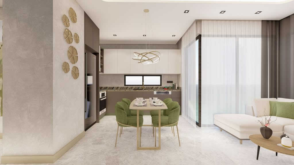 The complex will be located just 700 meters from the sea, Kestel is a quiet residential area with a developed urban infrastructure, a Russian school, beautiful beaches and stunning landscapes.